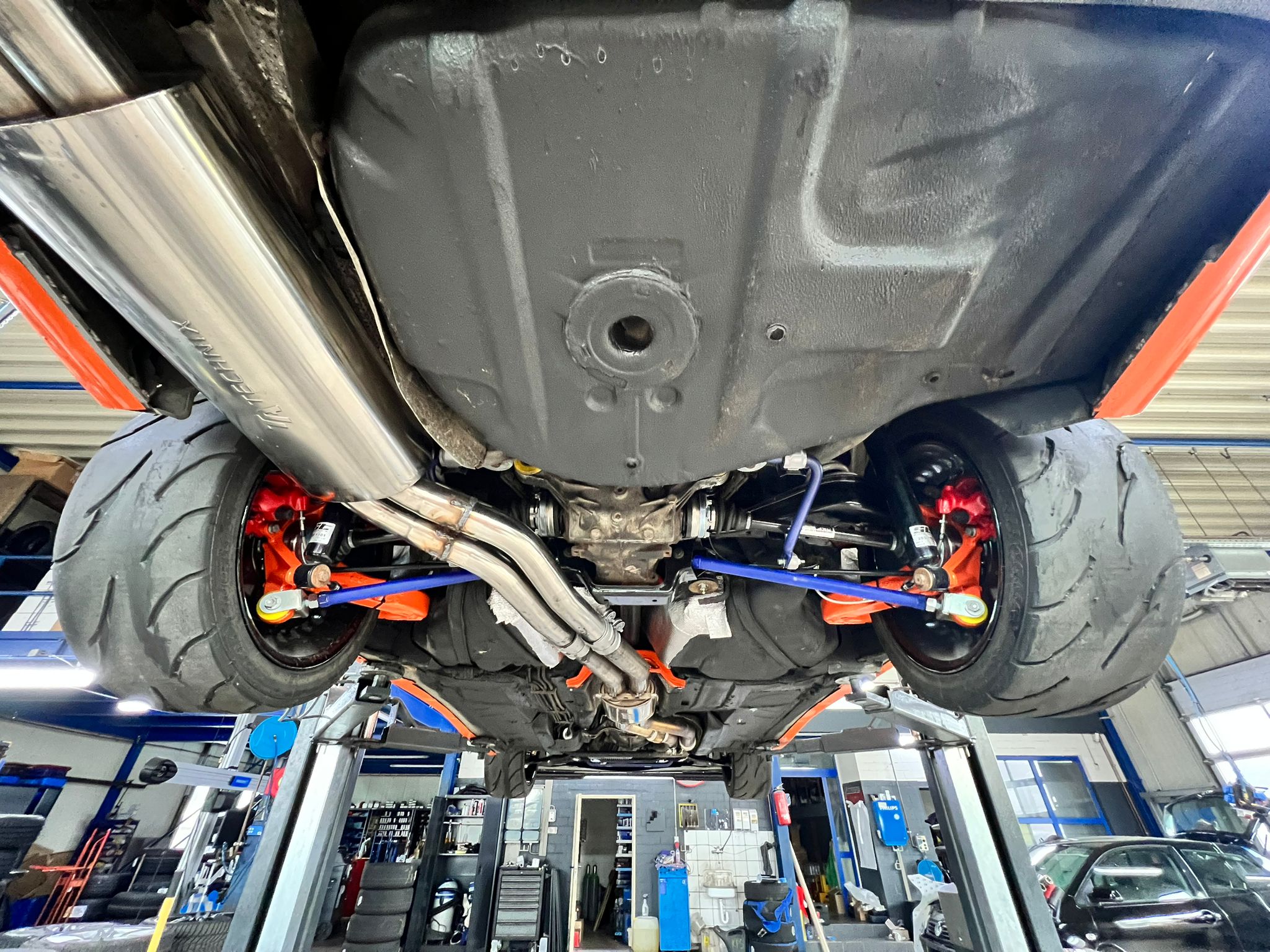 Abgasanlage: Schmiedmann Fächerkrümmer, Rennkats, Eigenbau Rohrführung und Endschalldämpfer Friedrich Motorsport