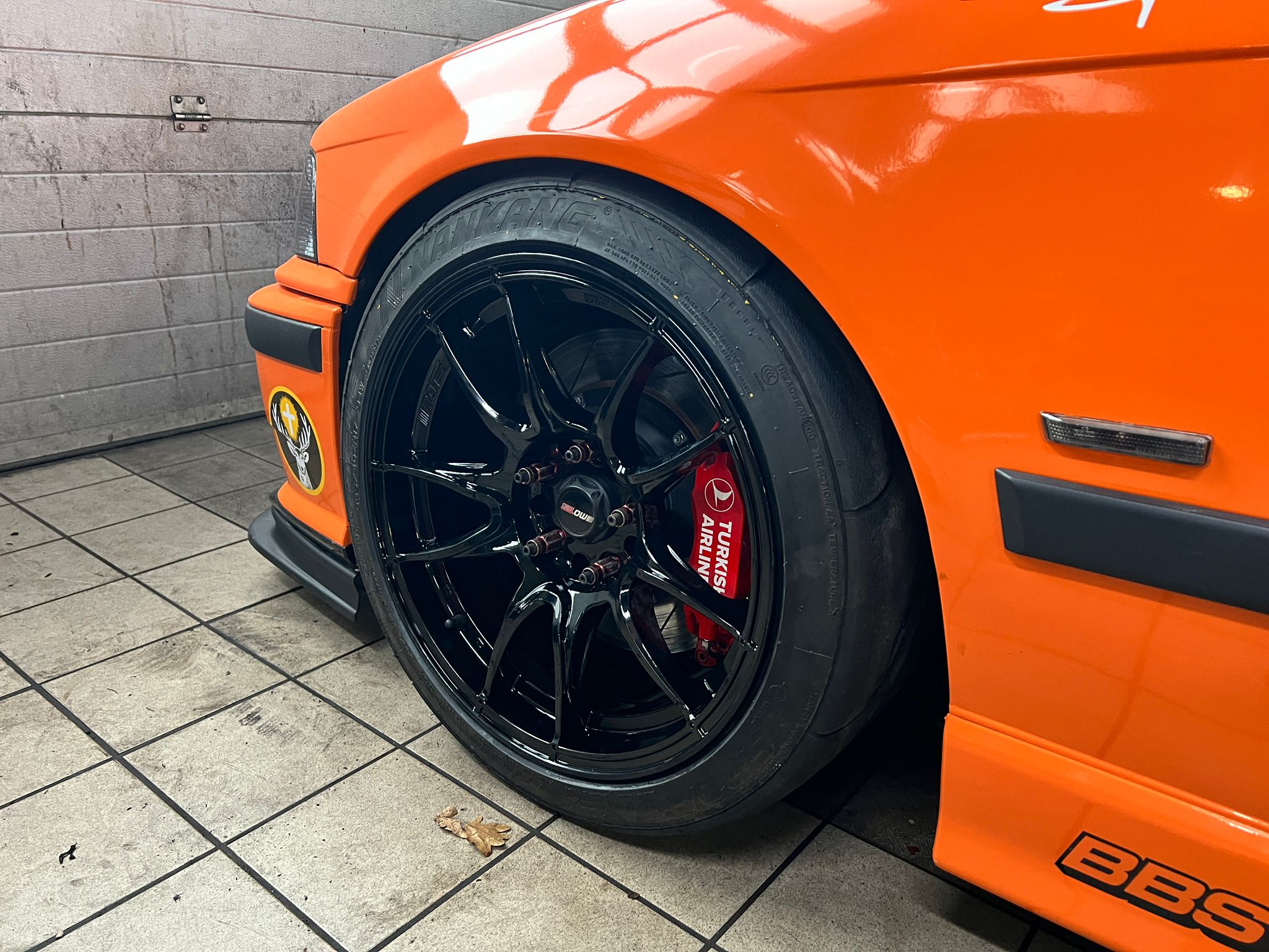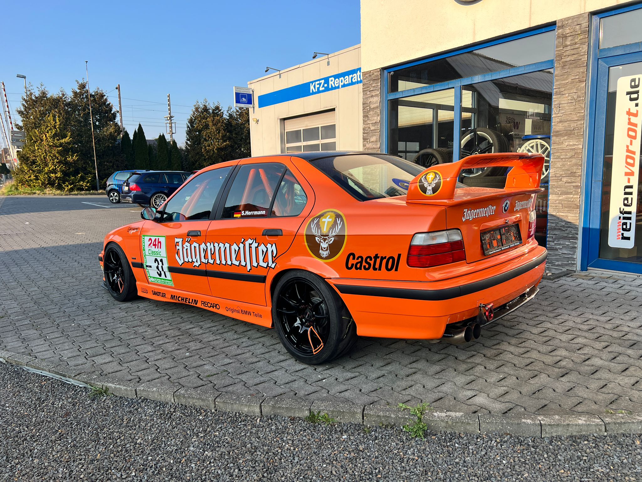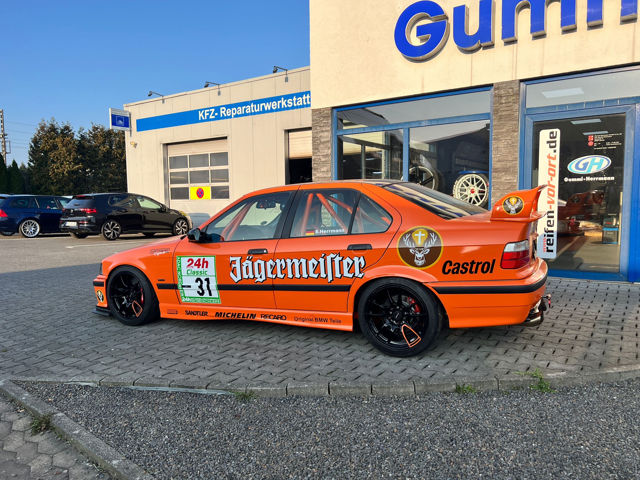 Bremse VA 4-Kolben V-Maxx Bremsscheiben 330mm mit Endless Bremsbelägen HA E36 328i mit EBC Yellow Stuff, Stahlflexleitungen
