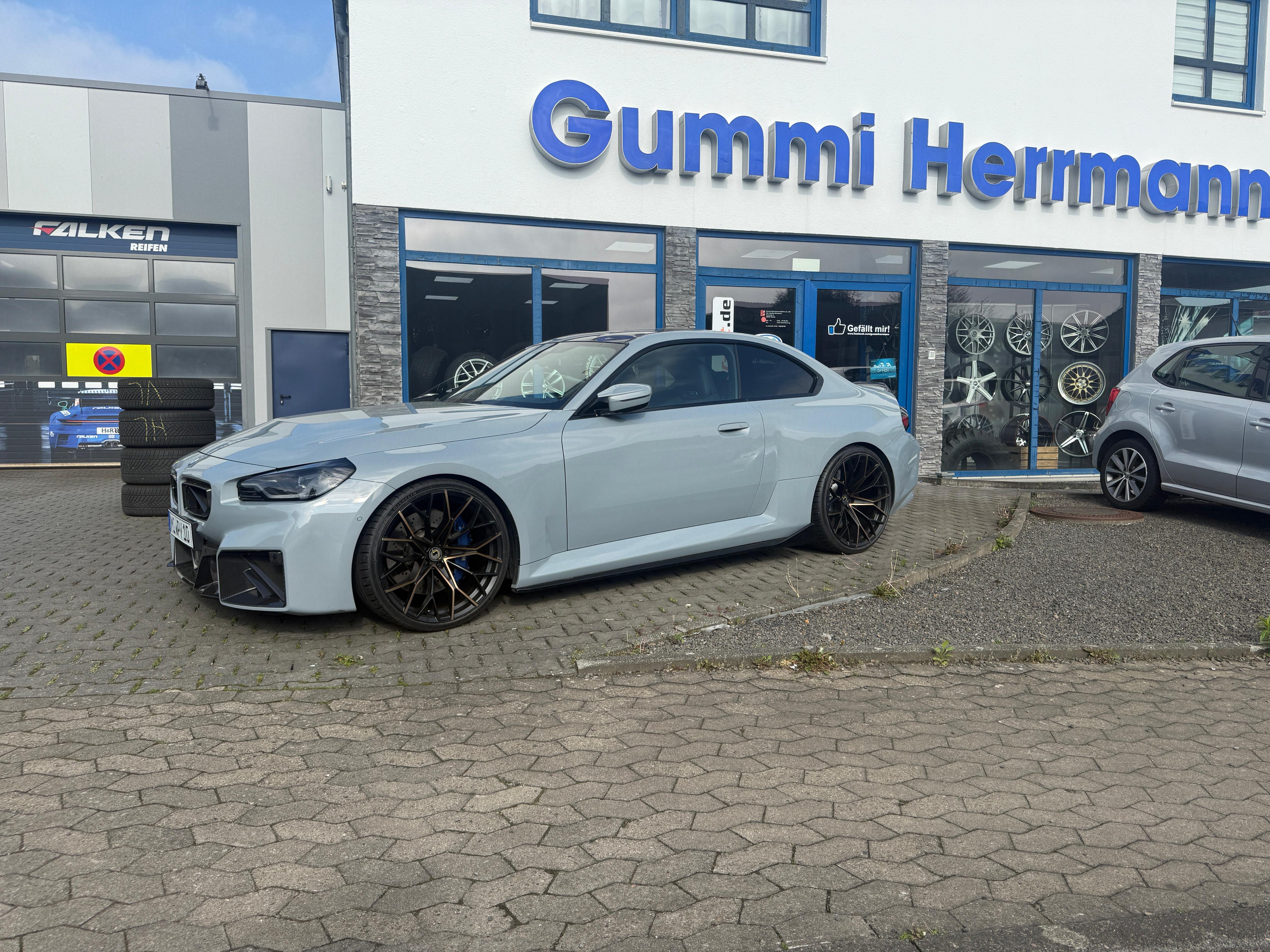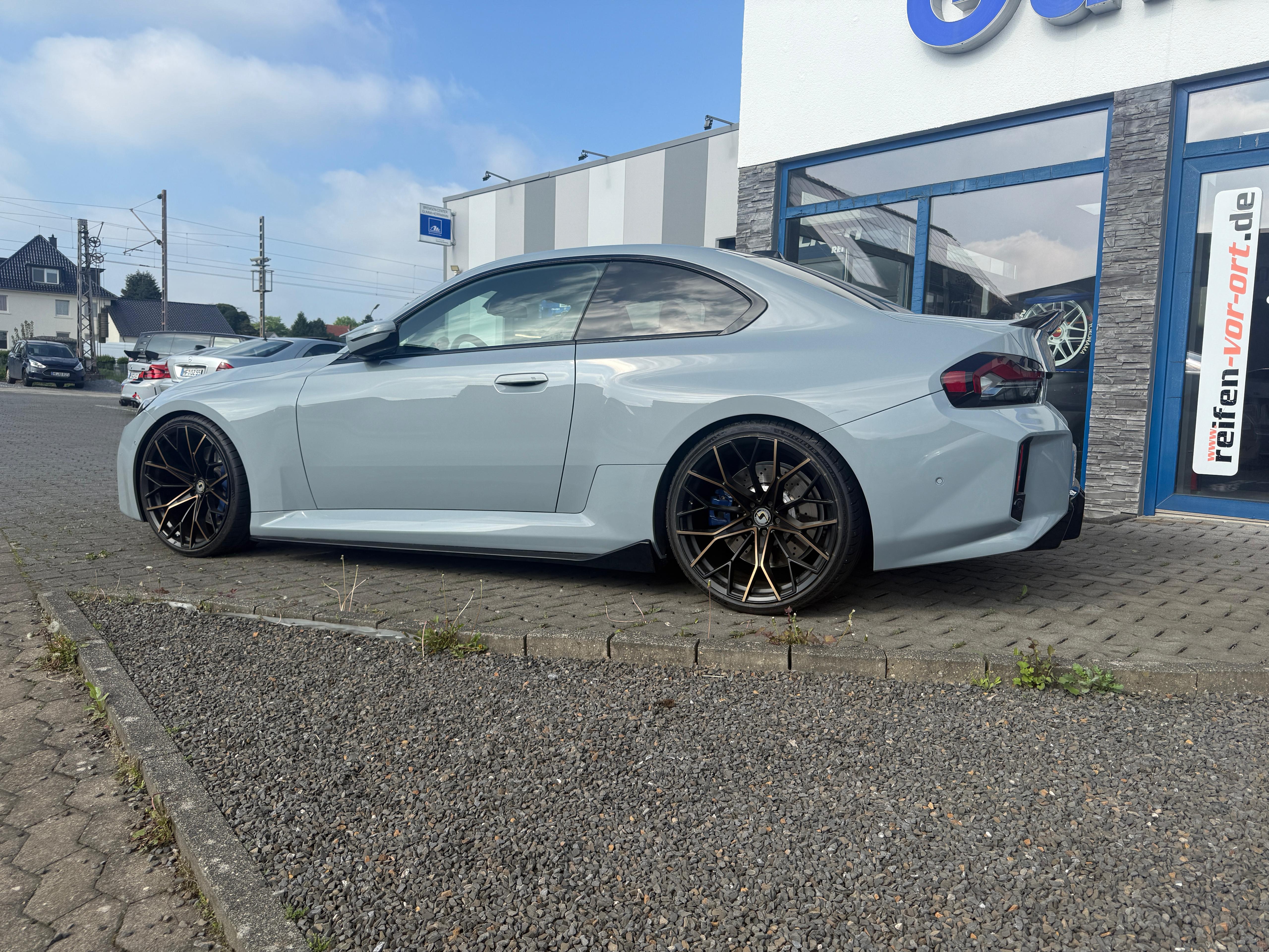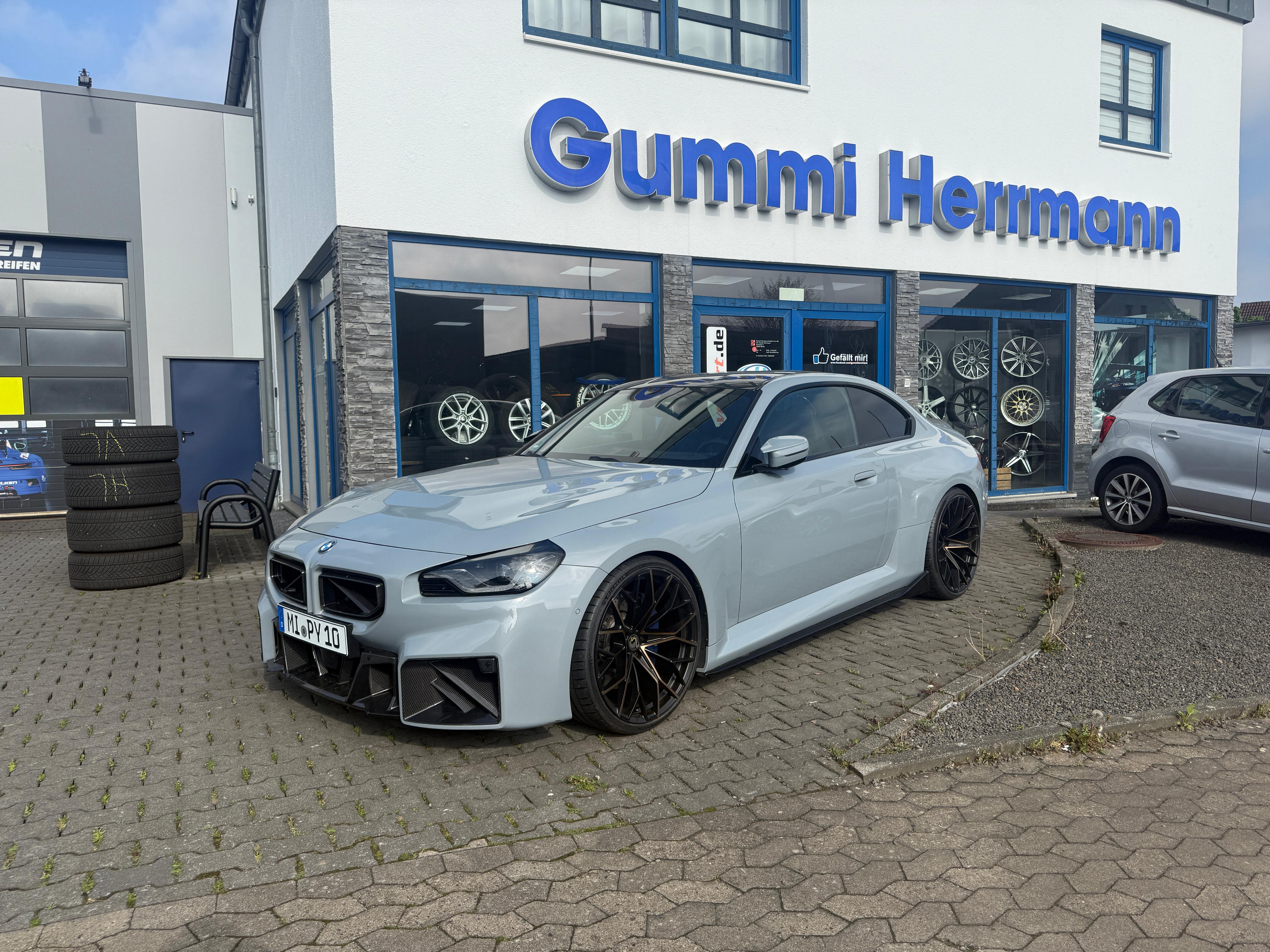 Der BMW M2 G87 steht für rohe Performance und modernen Motorsport – und genau das spiegelt sich in dieser Veredelung wider. Mit den verbauten H&R Tieferlegungsfedern sitzt der M2 deutlich satter auf der Straße und gewinnt nochmals an Aggressivität. Die 21” Schmidt Kyan Alufelgen sorgen für einen brutalen Auftritt: