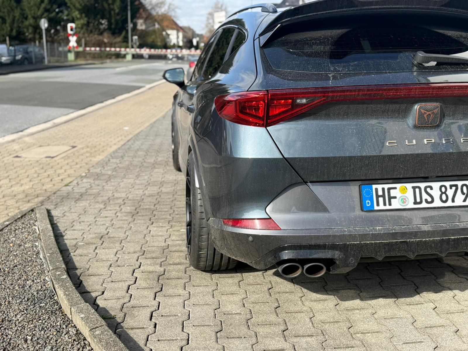 Dieser Cupra Formentor überzeugt mit einem sportlich-dynamischen Auftritt. Durch den Einbau von Vogtland Tieferlegungsfedern erhält das Fahrzeug eine deutlich sattere Straßenlage und eine noch markantere Optik. Die 19 Zoll Japan Racing Felgen in Kombination mit 245/40-19 Reifen unterstreichen den kraftvollen Charakter des Formentor und sorgen für eine stimmige Gesamtoptik. Professionell umgesetzt von Gummi Herrmann – für Performance, Stil und Fahrdynamik.