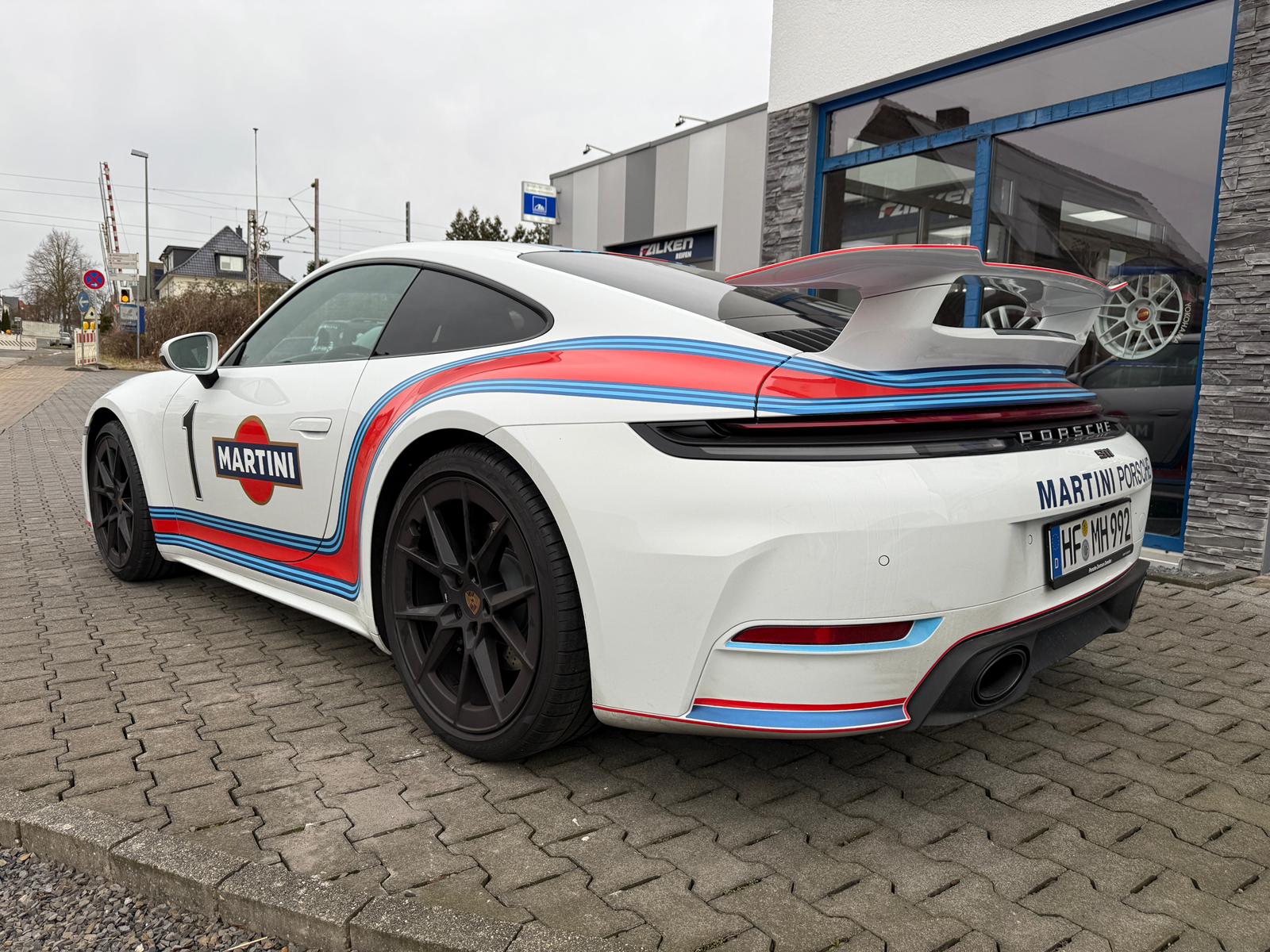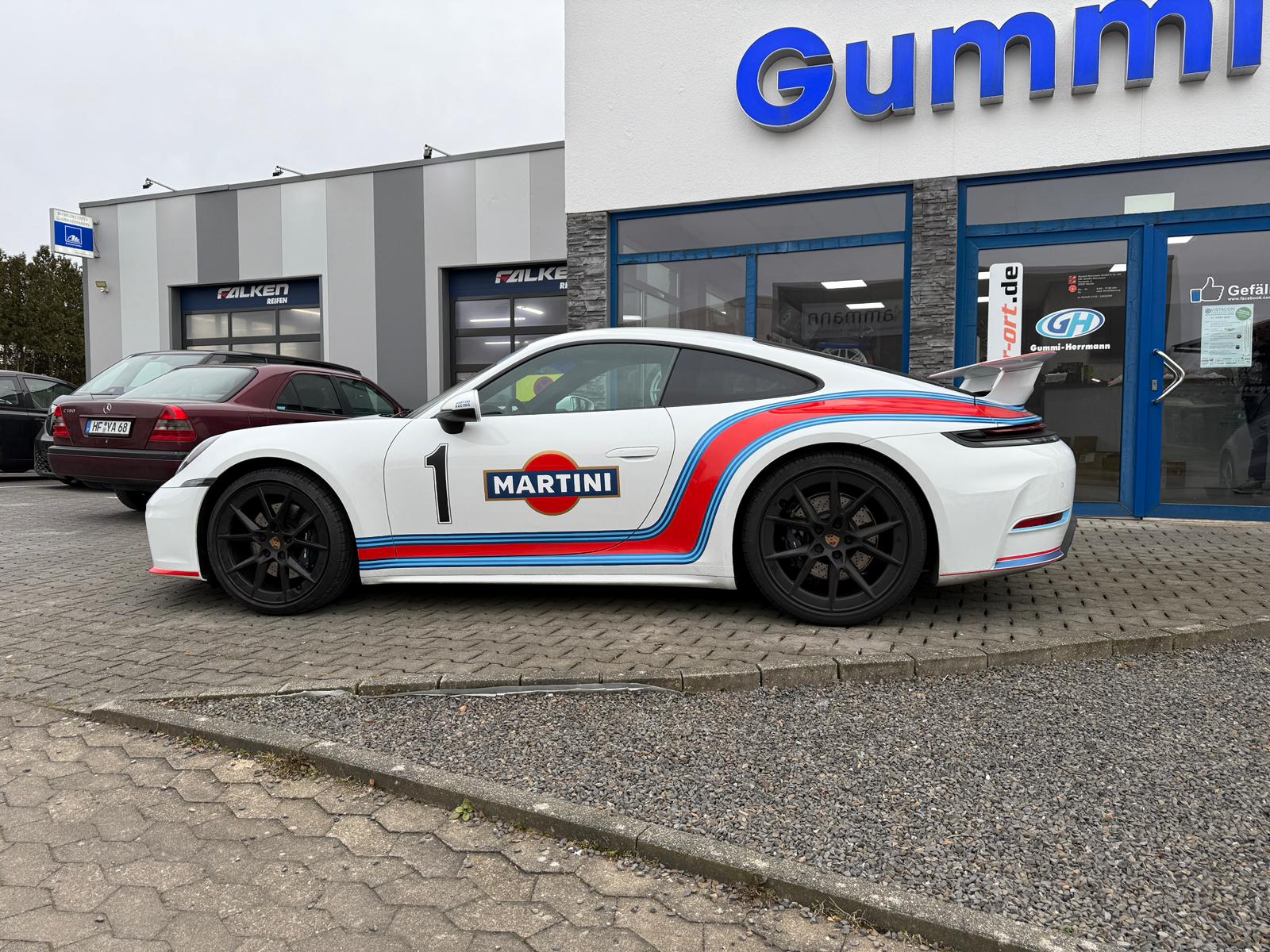 In weiß gehalten und veredelt im Retro Martini Look, verbindet dieser 992 die legendäre Motorsport-Historie von Porsche mit zeitgemäßem Design. Trotz nahezu originalem Zustand sorgt die ikonische Martini-Optik für einen unverwechselbaren Auftritt – dezent, hochwertig und voller Charakter.