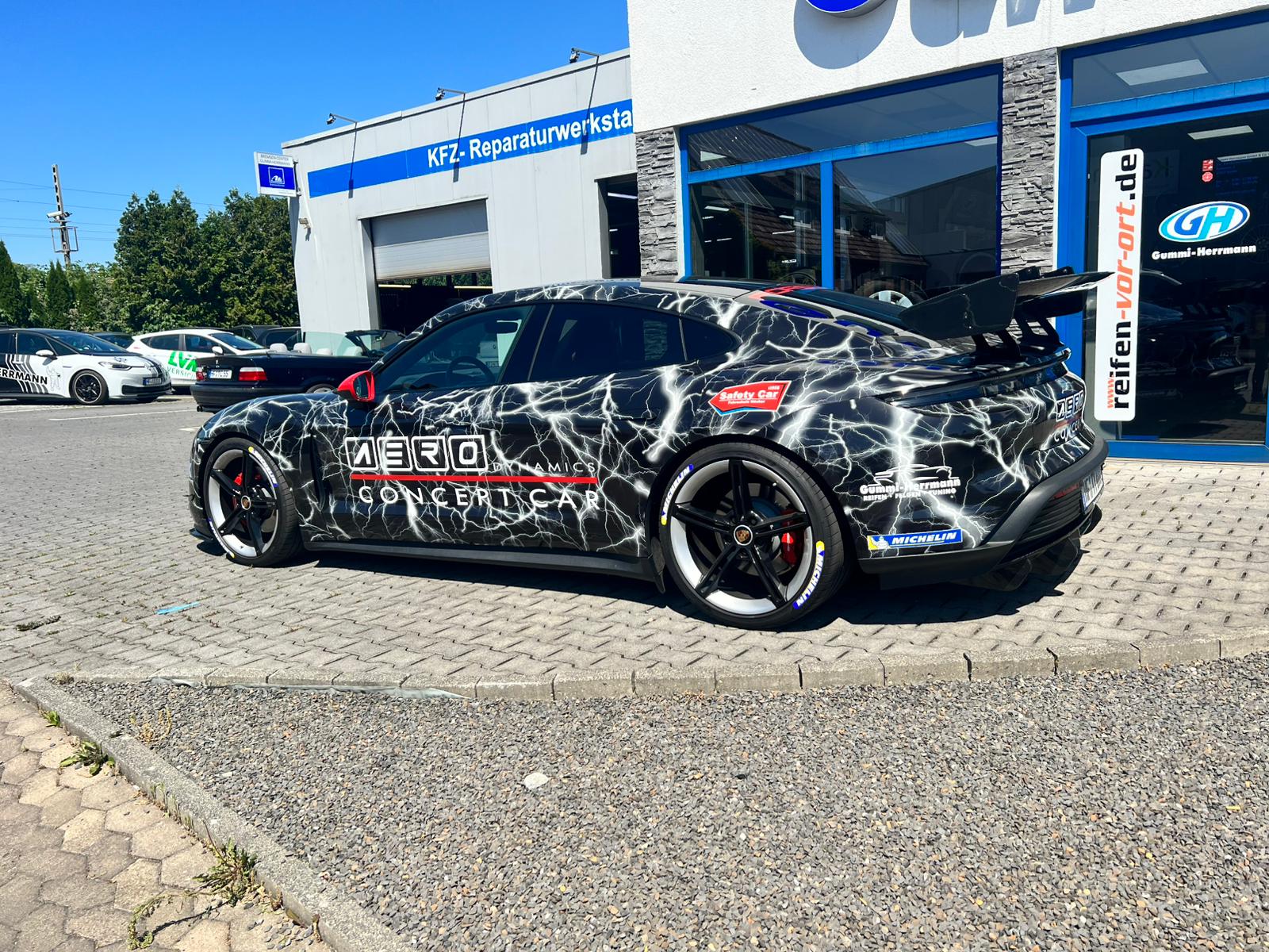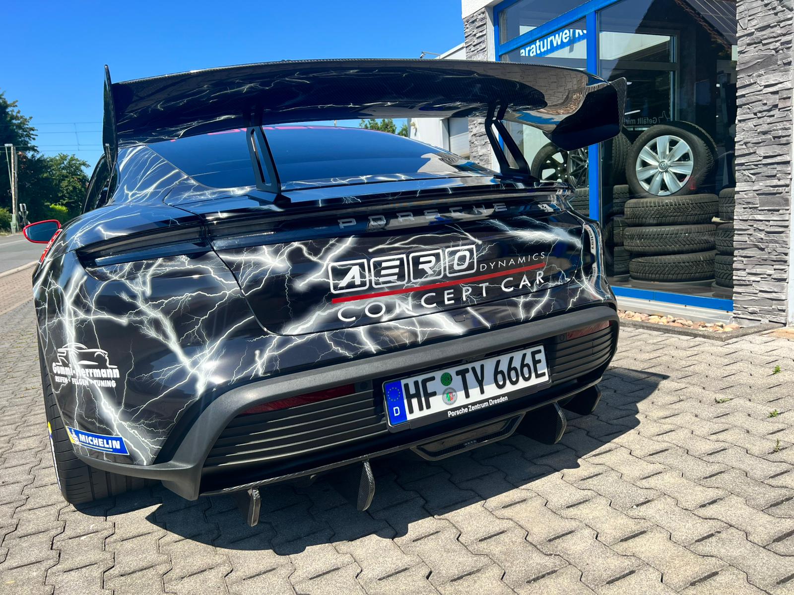 Dieser Porsche Taycan diente als Prototypfahrzeug und wurde uns von aero Concept zur Verfügung gestellt, um die Entwicklung und Fertigung eines Carbon-Diffusors sowie eines Carbon-Heckspoilers zu realisieren. Die Komponenten wurden passgenau konstruiert, gefertigt und am Fahrzeug montiert, um Aerodynamik und Design auf OEM-nahem Niveau zu vereinen.